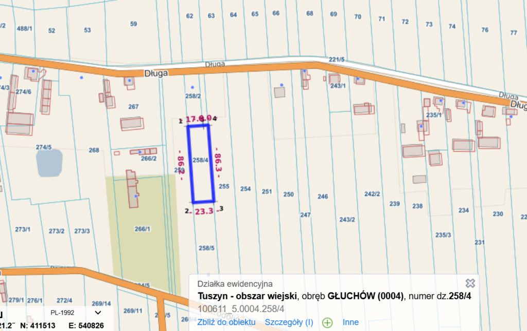 Powierzchnia 2000 m² – wystarczająco dużo miejsca na dom, ogród, parking i biznes.