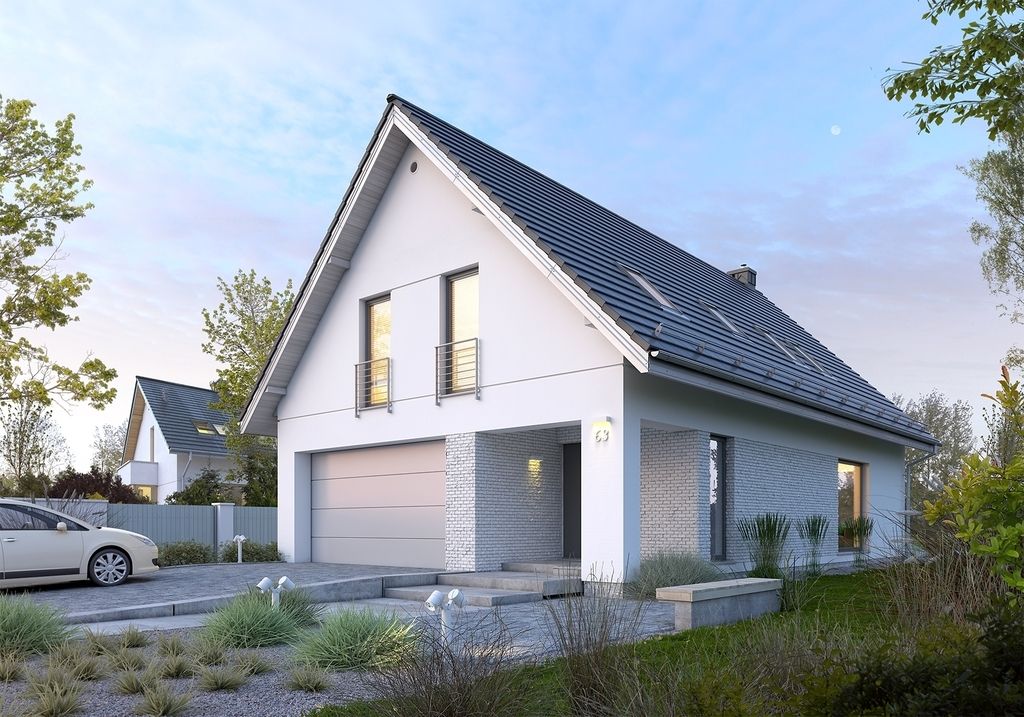 Projekt przewiduje budowę funkcjonalnego domu o powierzchni ok. 200 m² – parterowego z użytkowym poddaszem oraz dużym garażem dwustanowiskowym. To idealna propozycja dla osób, które chcą szybko rozpocząć realizację inwestycji bez konieczności przechodzenia przez długotrwałe formalności.