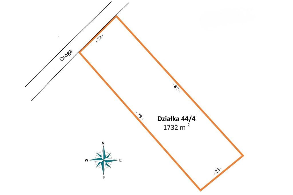 Działka o numerze 44/4 i powierzchni 1732 m2.
