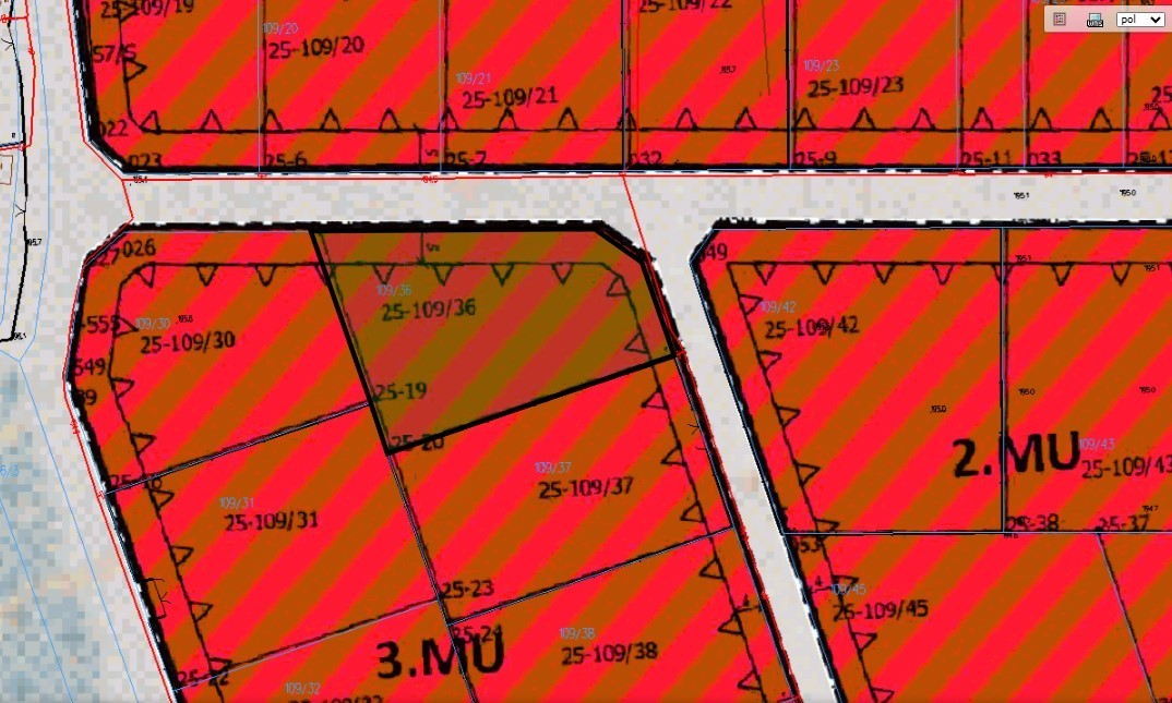 Działki położone są na terenie zabudowy mieszkaniowo - usługowej (3 MU)