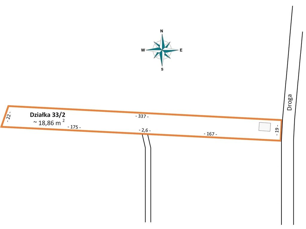- Wygodny dojazd: Do nieruchomości prowadzi droga asfaltowa, a dodatkowa droga wewnętrzna z boku działki zapewnia komfortowy dostęp w głąb całego, długiego na ponad 330 metrów terenu.