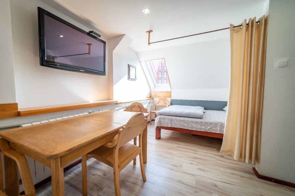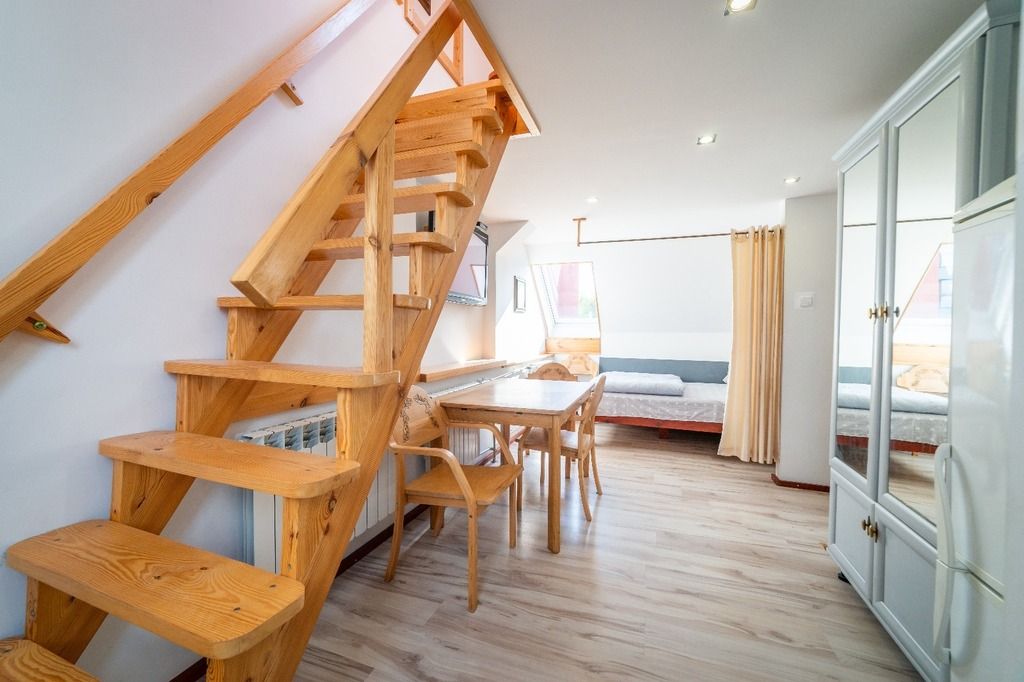 - Lokal 2 – 35 m² (salon z aneksem kuchennym, sypialnia, łazienka) doskonały dla pary lub singla, w pełni wyposażony.