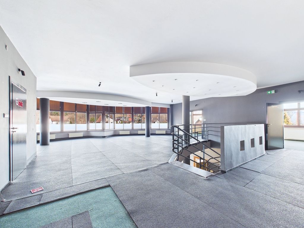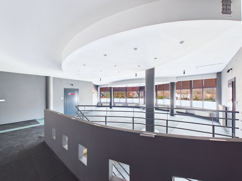 Przedstawione ogłoszenie ma charakter wyłącznie informacyjny i nie stanowi oferty w rozumieniu art. 66 par. 1 Kodeksu cywilnego. Biuro Nieruchomości dokłada starań, aby treść ogłoszeń była rzetelna i aktualna, jednak nie ponosi odpowiedzialności za ewentualne nieścisłości, błędy lub nieaktualność ogłoszenia.A two-story retail and service space with an area of approximately 400 sq m is available for rent. The space is located in Myślenice, on Kazimierza Wielkiego Street, 3 km from the city center. Thanks to its large area and convenient layout, the building can be adapted to suit the needs of your business. It can be used as an office or shop, but it could also be used successfully as a gym, fitness center, restaurant, café, preschool, or even a workshop.