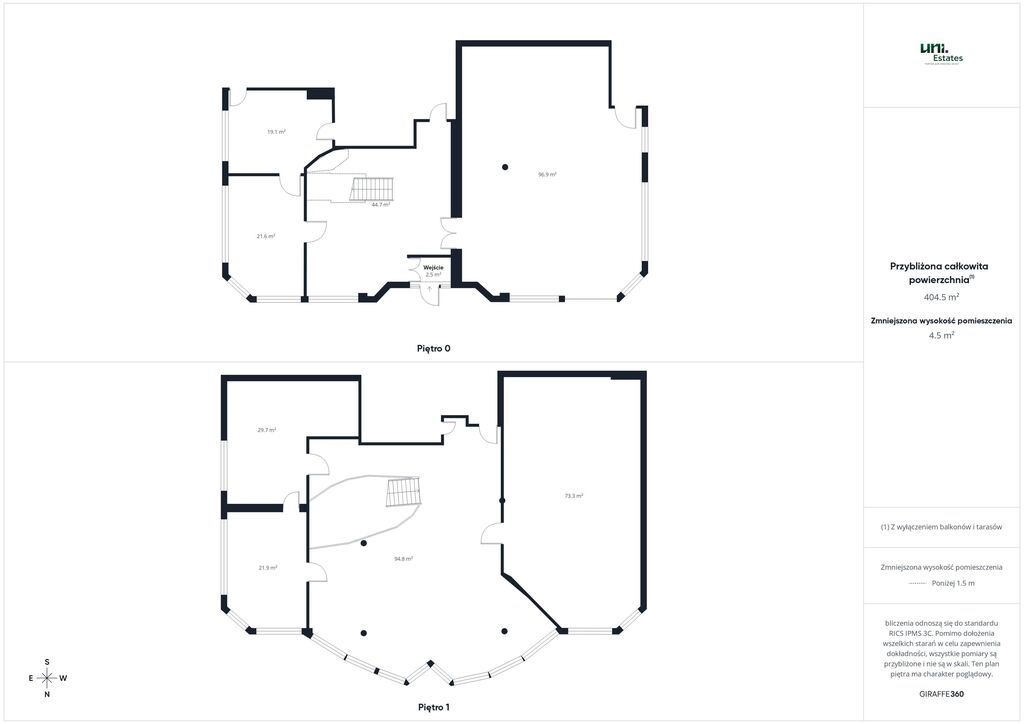 - Room with an area of 73 m2;