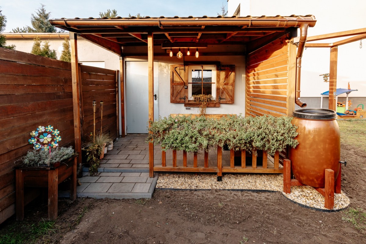 - pomieszczenie gospodarcze o pow. 10,22 m2 (zlokalizowane na ogródku)