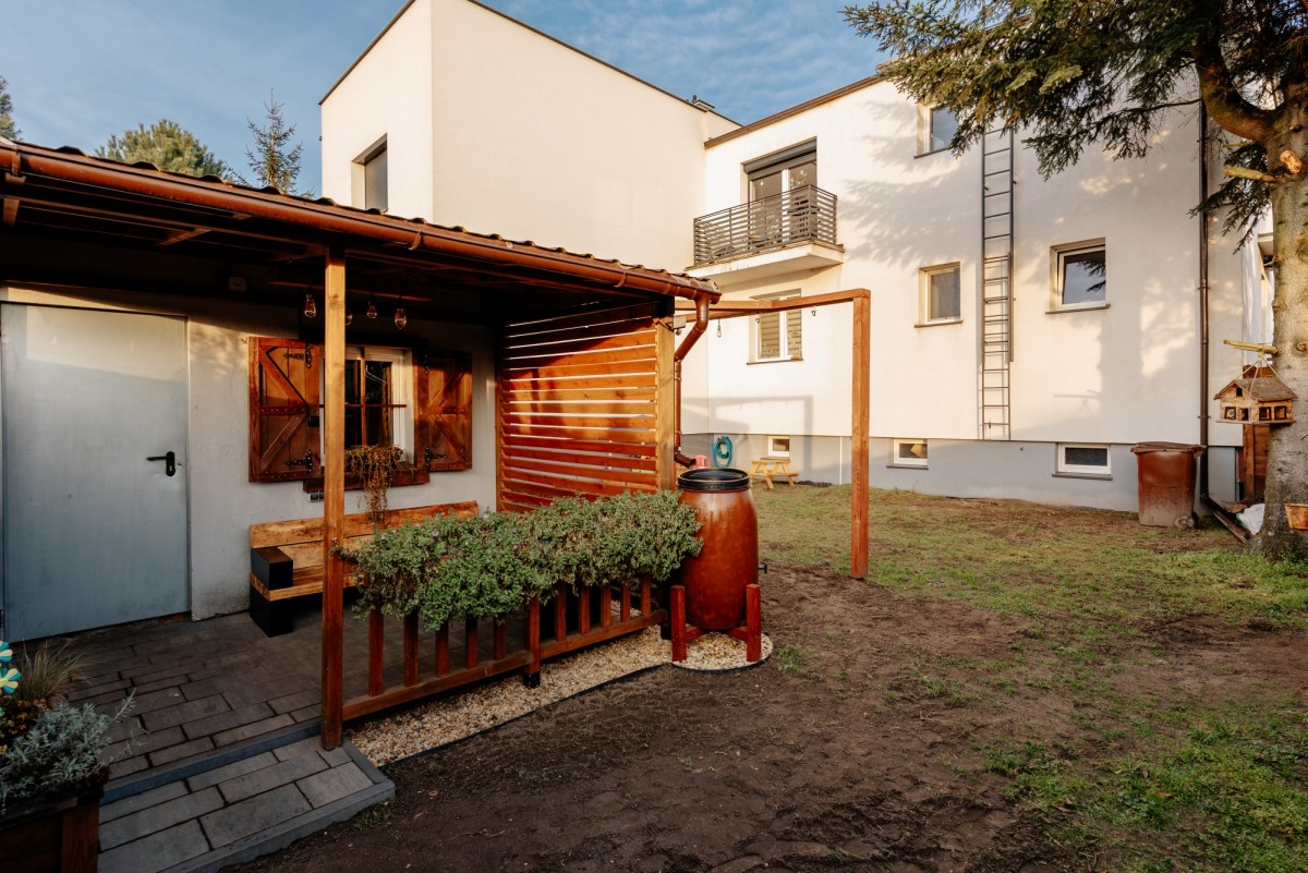 Ogromnym atutem mieszkania jest przynależny ogródek (do wyłącznego korzystania) wraz z pomieszczeniem gospodarczym oraz dobudowaną altanką.
