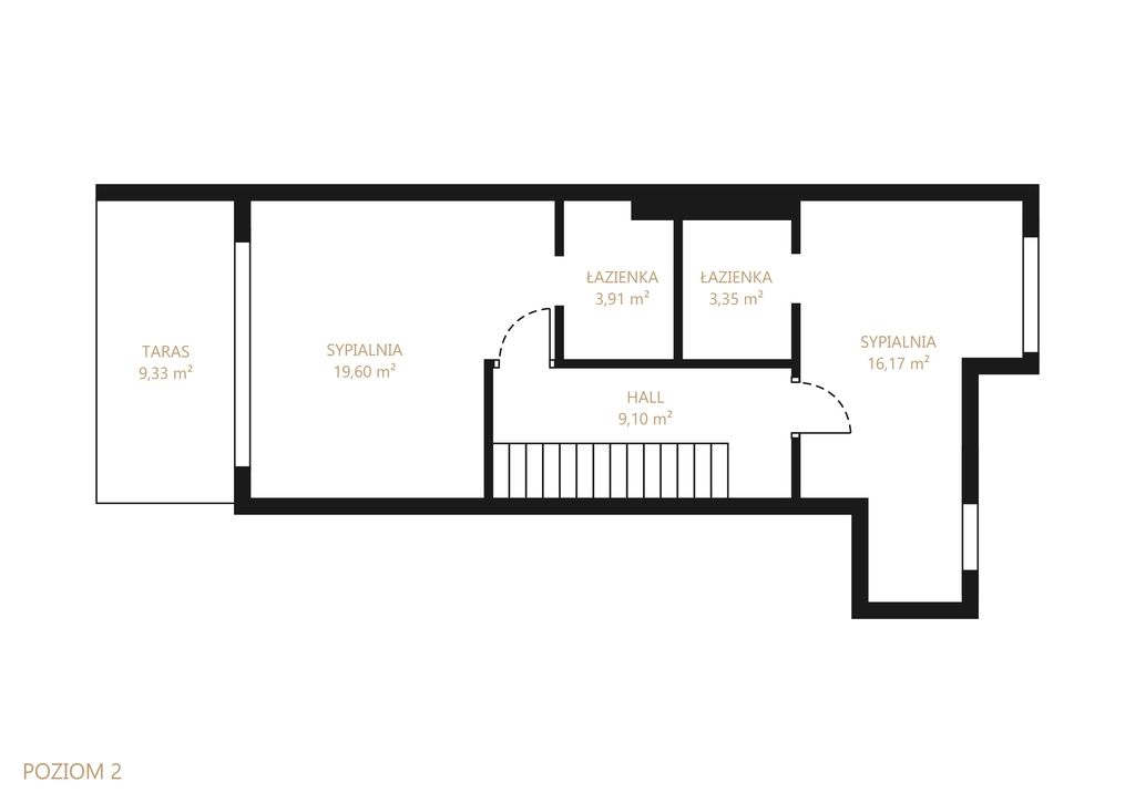 II poziom: dół: 2 sypialnie z łóżkami 160, łazienka z prysznicem walk in, taras idealny na poranną kawę, widok na zatokę