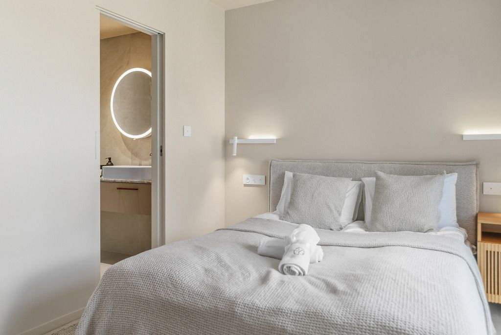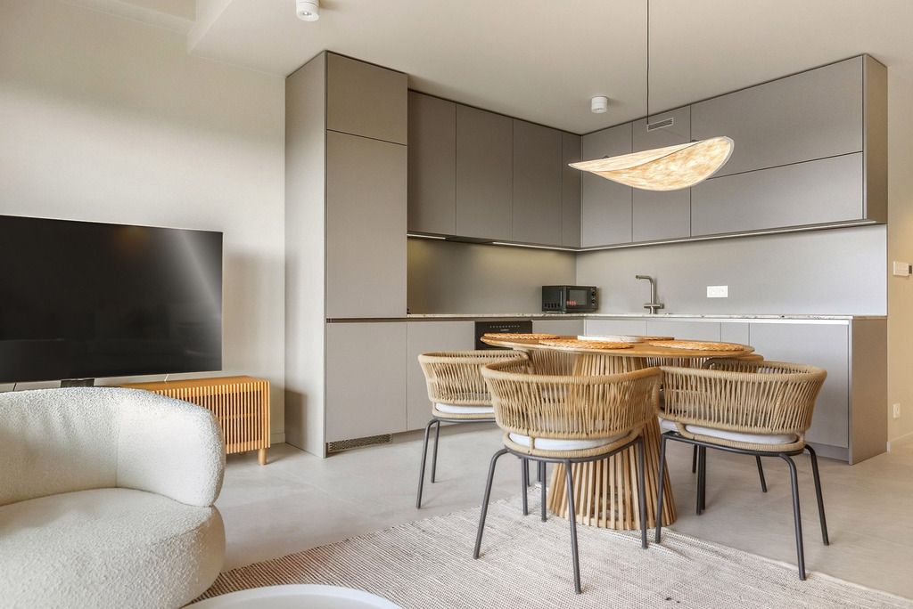 nowoczesny design połączenie drewna i bieli, szlachetne materiały, wysokiej jakości sprzęt, topowe oświetlenie. Udogodnienia: klimatyzacja, panoramiczne przesuwne drzwi balkonowe.
