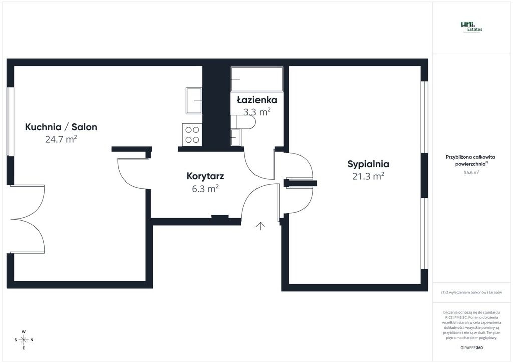 Informacje techniczne : - Powierzchnia: 55,6 m²