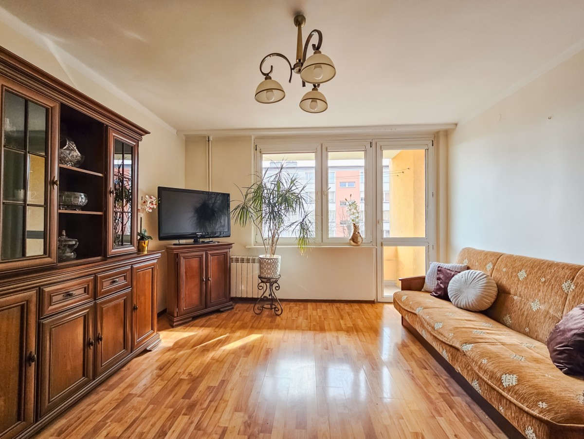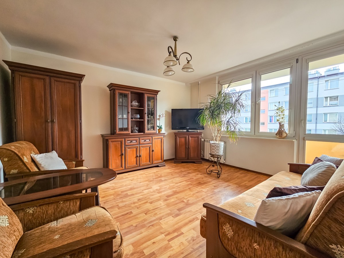 Salon to miejsce odpoczynku - gotowy do korzystania, z pełnym wyposażeniem. Oddzielna kuchnia daje wygodę codziennego życia, a sypialnia z dużą szafą zapewnia komfort przechowywania. Całość uzupełnia łazienka z pełnym wyposażeniem oraz duża loggia o powierzchni około 5 m², która staje się naturalnym przedłużeniem mieszkania - idealna na poranną kawę lub wieczorny relaks.