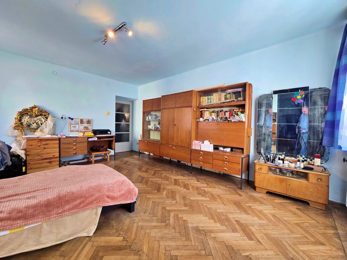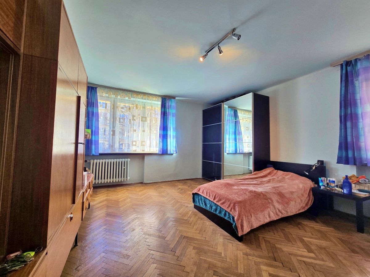 Parametry nieruchomości: • Powierzchnia mieszkania: 104,24 m² • Liczba pokoi: 4 ustawne, niezależne pokoje • Kondygnacja: Wysoki parter (zapewnia prywatność i komfort) • Wysokość pomieszczeń: 258 cm • Stan: Do remontu (idealna baza do własnej aranżacji, możliwość wydzielenia dwóch mieszkań) • Stolarka: Okna PCV