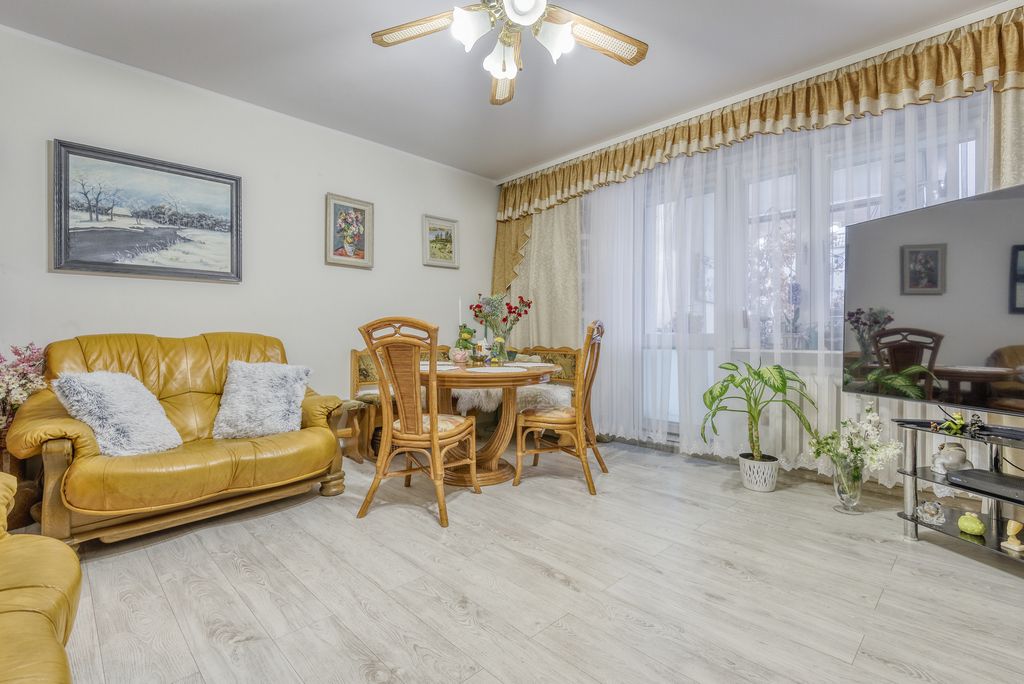 Okna PCV, na podłodze panele i terakota. Mieszkanie gotowe do zamieszkania lub odświeżenia – idealne dla osób szukających przestrzeni do własnej aranżacji.