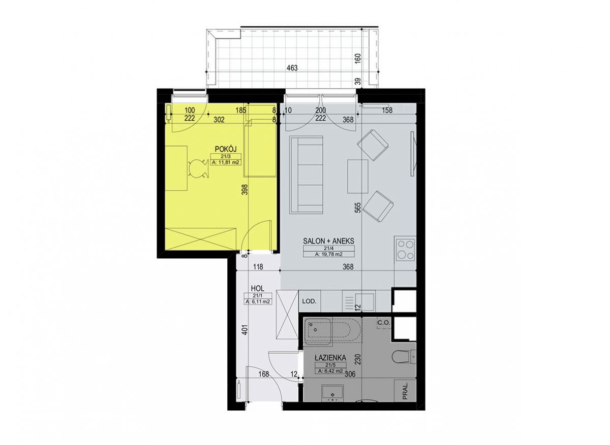 Dodatkowo przynależy przestronny balkon o powierzchni 7,40 m2.
