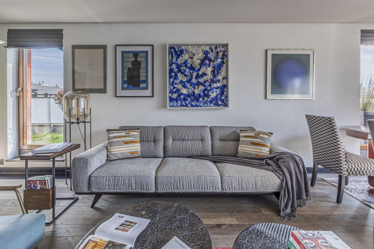 Apartament został zaprojektowany z myślą o wygodzie codziennego życia i podzielony na dwie strefy - dzienną i prywatną:
