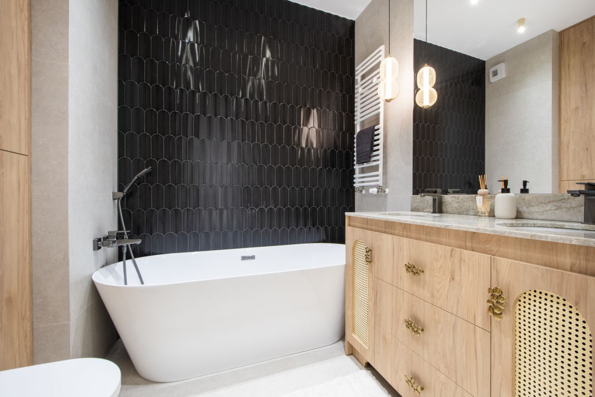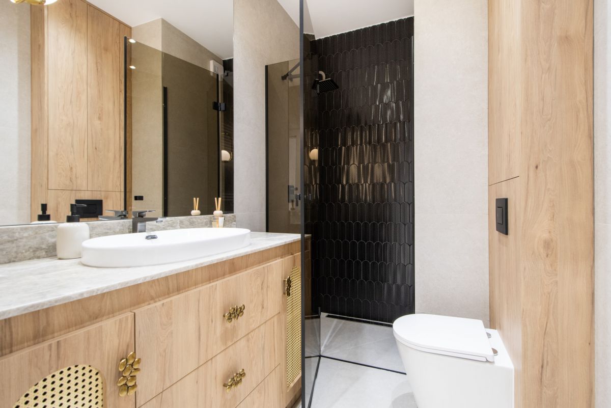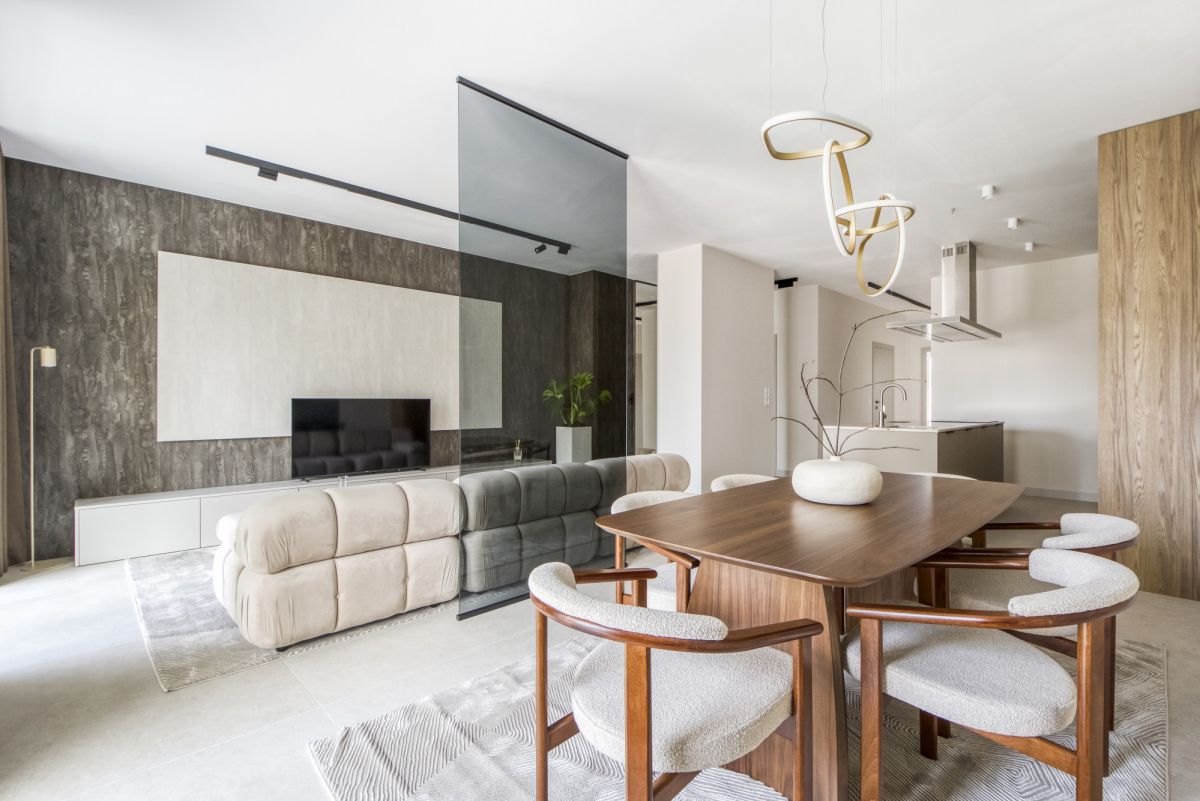 Mieszkanie zostało wykończone z dbałością o każdy detal, z użyciem materiałów klasy premium: