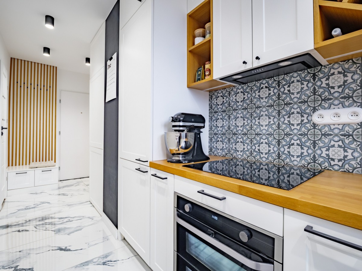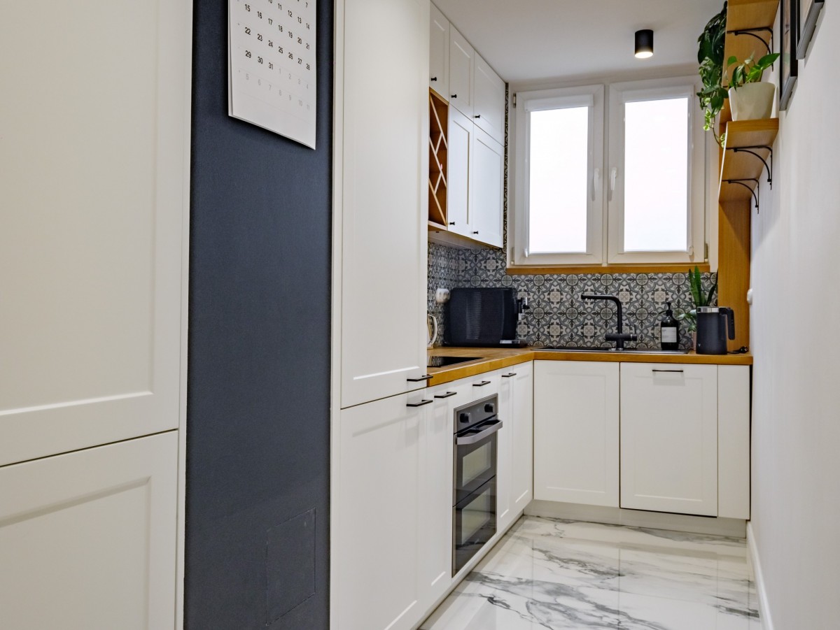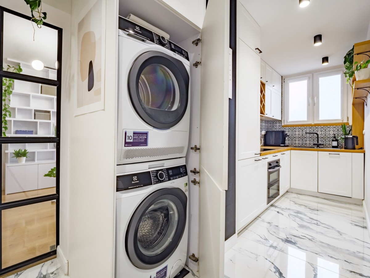 Mieszkanie przeszło generalny remont w 2021 roku - wymieniono instalacje, okna, podłogi (drewno), zamontowano nowe meble, a kuchnię wykonano na zamówienie. W przedpokoju znajduje się praktyczna zabudowa z pralko-suszarką, w każdym z 2 pokoi klimatyzacja, w kuchni filtr odwróconej osmozy.