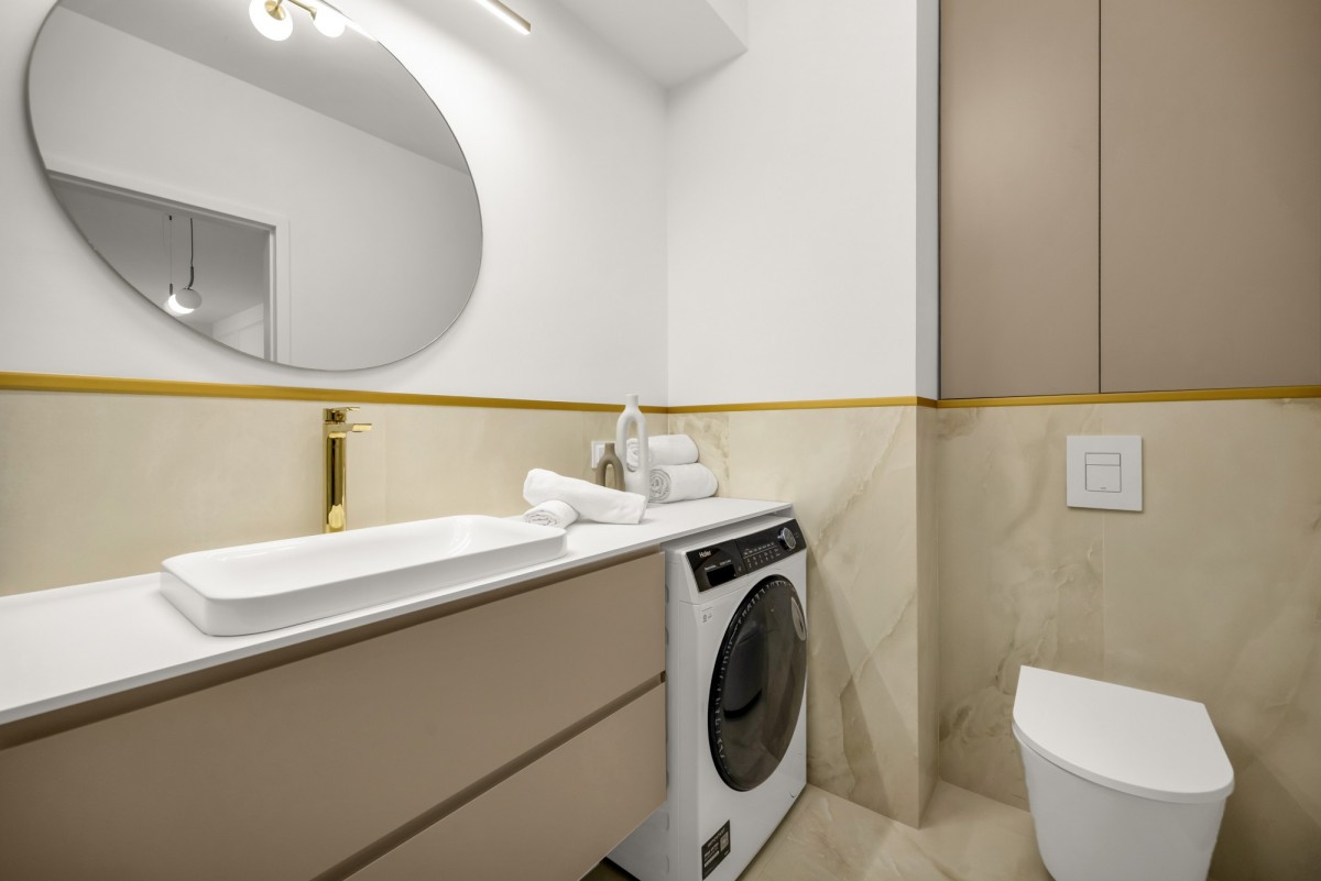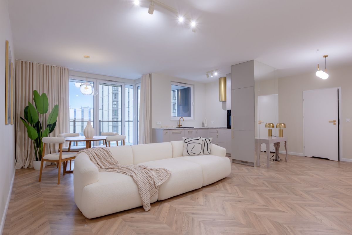 :: Krótko: 3-pokojowe mieszkanie o powierzchni 70,7 m² z dużym balkonem, położone przy ul. Marii Rodziewiczówny 1 na warszawskiej Pradze-Południe, w inwestycji Aura Sky. Lokal znajduje się w nowoczesnym budynku z windą, w drugiej linii zabudowy - z ekspozycją na południowy wschód i widokiem na zielone patio. Mieszkanie świeżo wykończone i gotowe do wprowadzenia. :: Dla kogo? Dla pary lub rodziny, która szuka gotowego do zamieszkania mieszkania w dobrze skomunikowanej i rozwiniętej części Warszawy. Świetnie sprawdzi się również jako inwestycja pod wynajem - bliskość centrum, sklepów i terenów zielonych to ważne atuty dla najemców. :: Atuty: -Nowe, świeżo wykończone mieszkanie - nie wymaga żadnych nakładów -Przestronny salon z dużymi oknami i dostępem do balkonu -Ekspozycja południowo-wschodnia - jasne, słoneczne wnętrza przez cały dzień -Wszystkie okna wychodzą na wewnętrzne, zielone patio - zapewnia ciszę i prywatność -Duży balkon z miejscem na stół lub strefę relaksu -Komfortowa lokalizacja z pełną infrastrukturą w zasięgu krótkiego spaceru :: Czy to jest to, czego szukasz? Jeśli zależy Ci na gotowym mieszkaniu w wygodnej lokalizacji - bez hałasu ulicznego, ale z dostępem do sklepów, szkół i komunikacji - to mieszkanie będzie dobrym wyborem. To nowoczesna przestrzeń w rozwijającej się dzielnicy, z szybkim dojazdem do centrum i zielenią w zasięgu ręki. :: Rozkład: -Salon z aneksem kuchennym i wyjściem na duży balkon -Dwie sypialnie, również z dużymi oknami - wszystkie z ekspozycją na zielone patio -Łazienka z kabiną prysznicową typu walk-in -Ustawny przedpokój :: Co w okolicy? Aura Sky to jedna z najnowszych inwestycji na Pradze-Południe, zlokalizowana przy skrzyżowaniu ul. Ostrobramskiej i Rodziewiczówny. Komunikacja: linie 502, 514, 520 i 525 zapewniają szybki dojazd do centrum i metra Stadion Narodowy. Sklepy i usługi: CH Promenada, King Cross Praga, Leroy Merlin, liczne punkty usługowe i gastronomiczne. Edukacja: szkoły, przedszkola, żłobki w bezpośrednim sąsiedztwie. Rekreacja: Rezerwat Olszynka Grochowska, Rezerwat Króla Jana Sobieskiego, siłownie plenerowe i tereny spacerowe. :: Dodatkowo: Mieszkanie gotowe do wprowadzenia - bez konieczności remontu Duże okna zapewniające doskonałe doświetlenie Nowoczesny budynek z windą i całodobową ochroną Miejsce parkingowe naziemne - dodatkowo płatne 50 000 zł