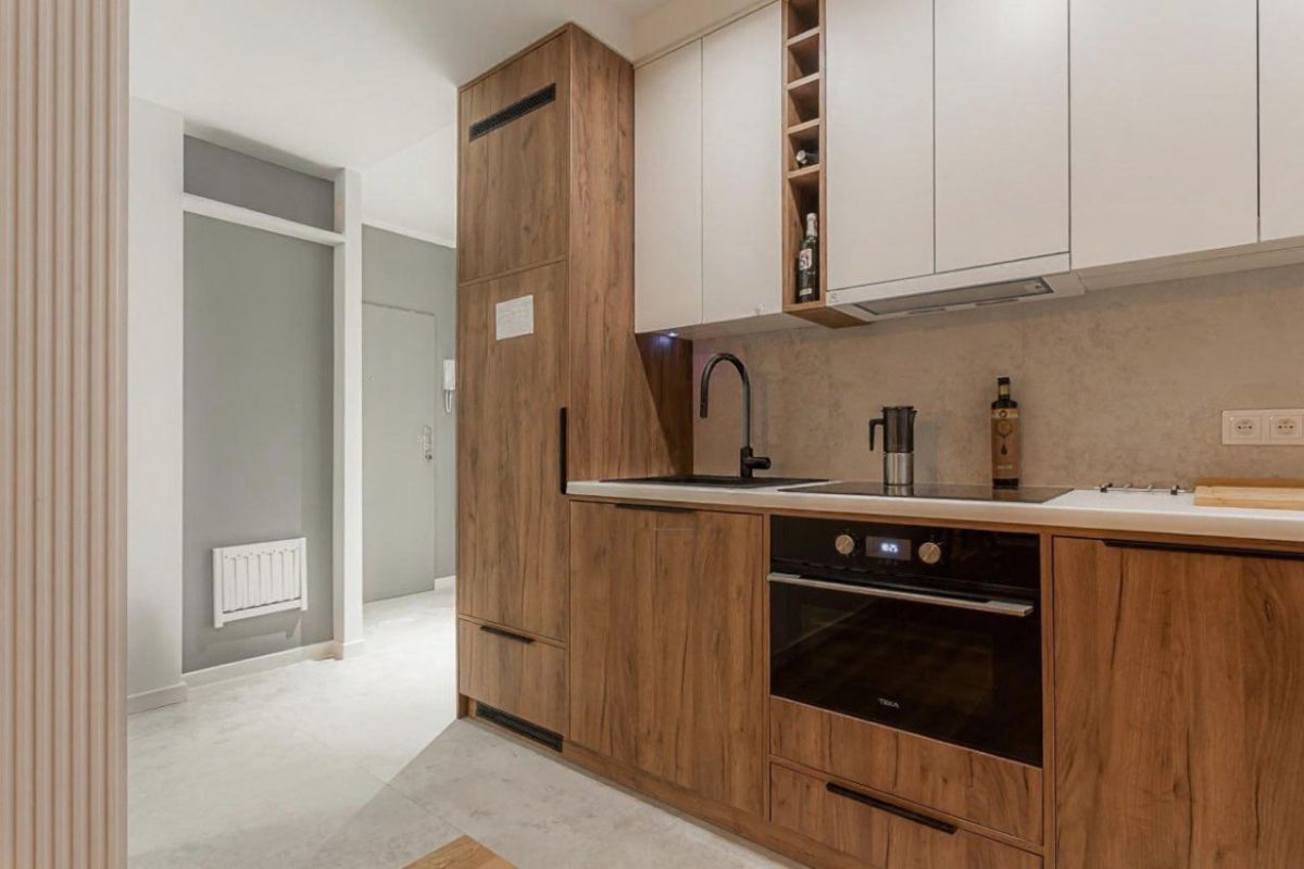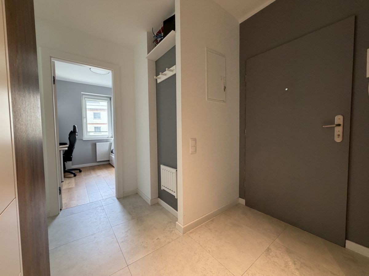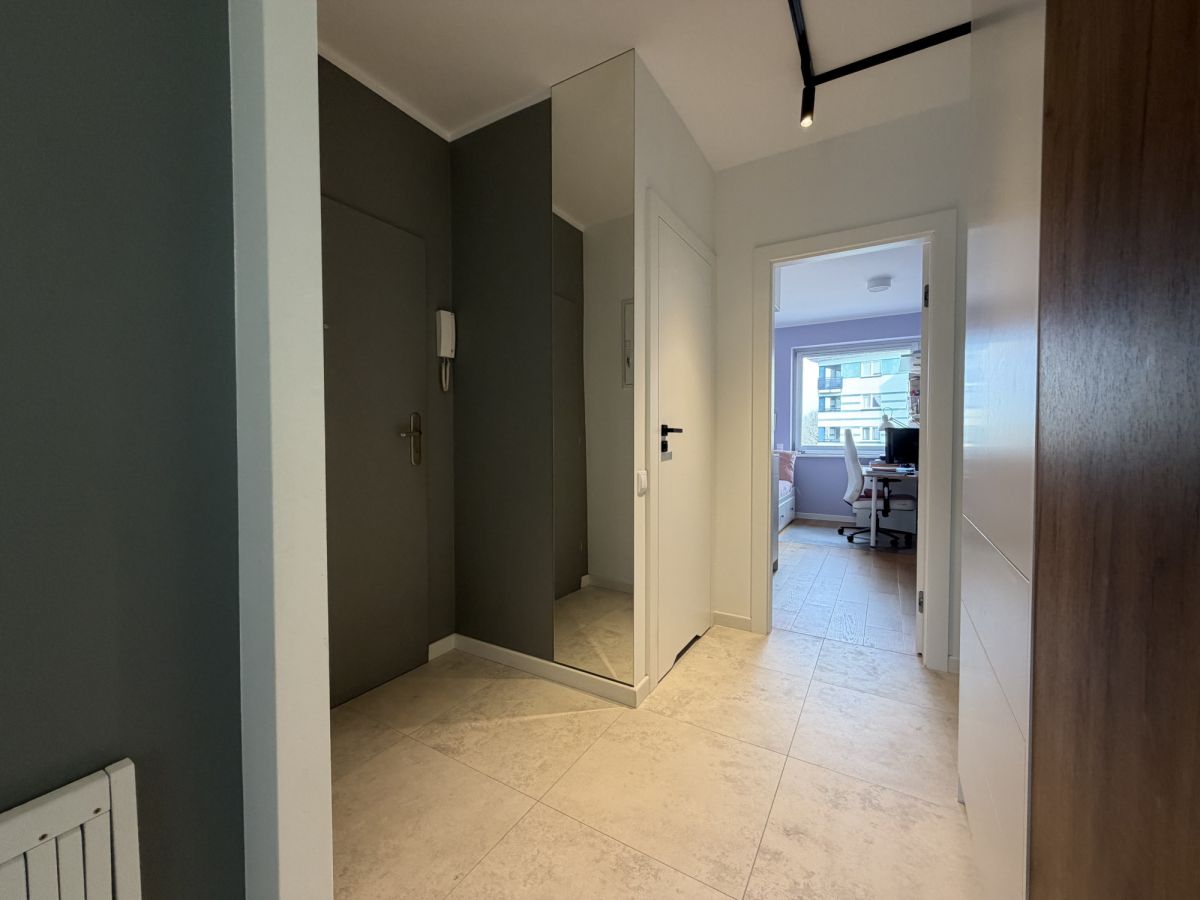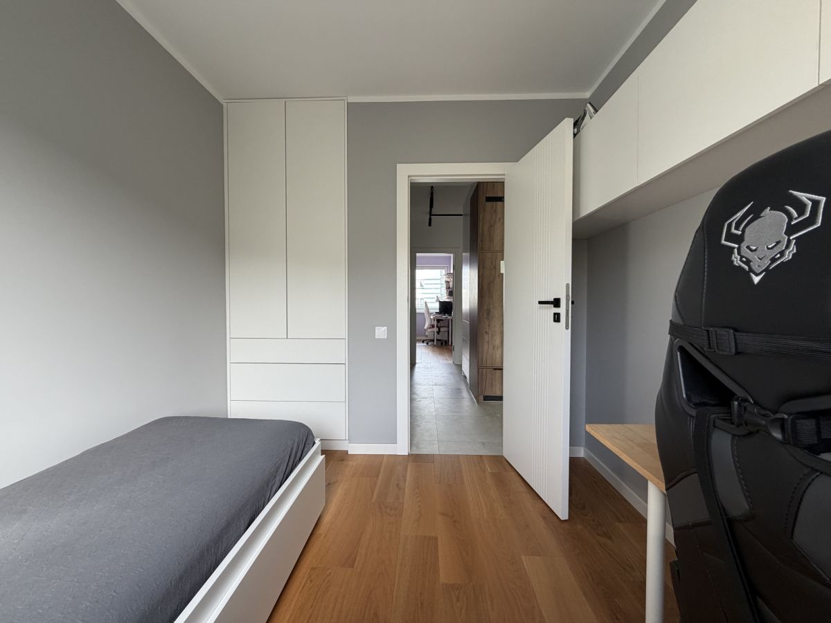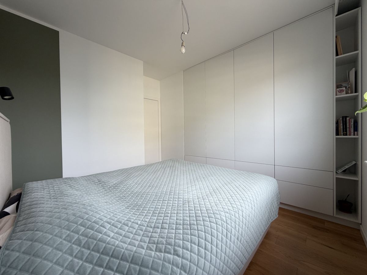 Mieszkanie przeszło generalny remont w 2024 roku - wymieniono instalacje wodno-kanalizacyjne i elektryczne, wykonano nowe podłogi, gładzie oraz zabudowy stolarskie na wymiar. Projekt został przygotowany we współpracy z architektem.