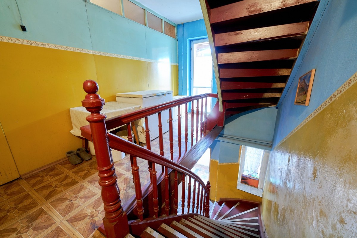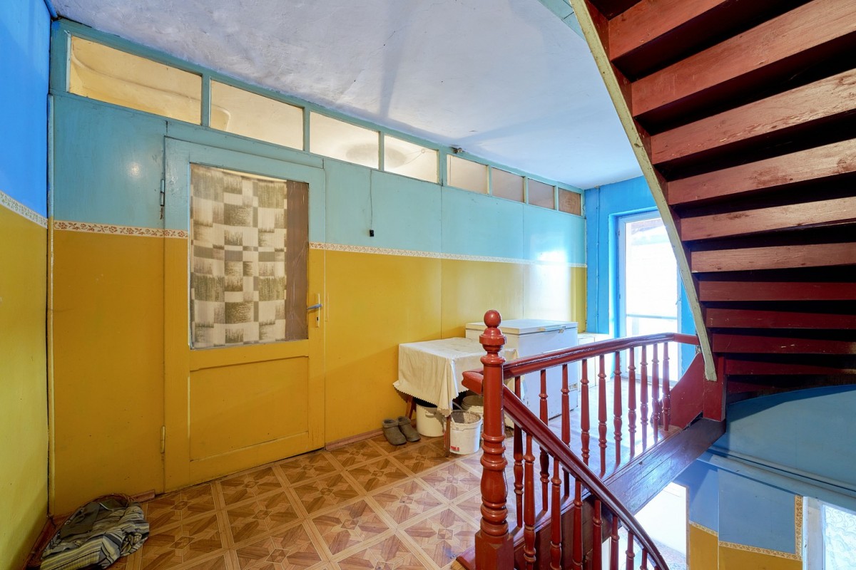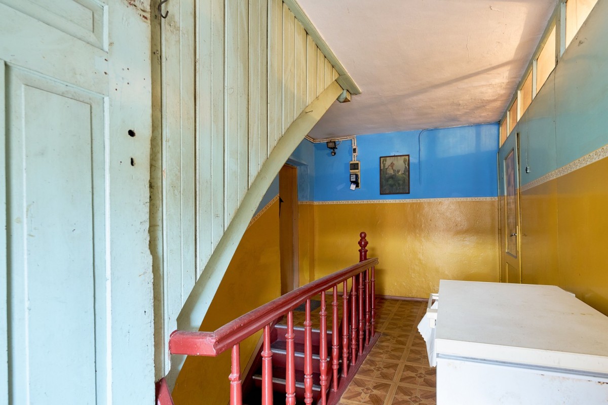 Mieszkanie położone jest na pierwszym piętrze dwukondygnacyjnego budynku usługowo-mieszkalnego z lat 40. XX wieku, składa się aż z sześciu pomieszczeń: