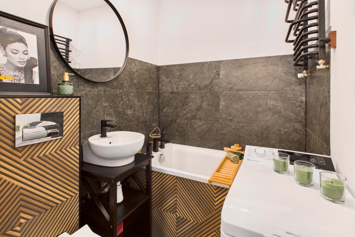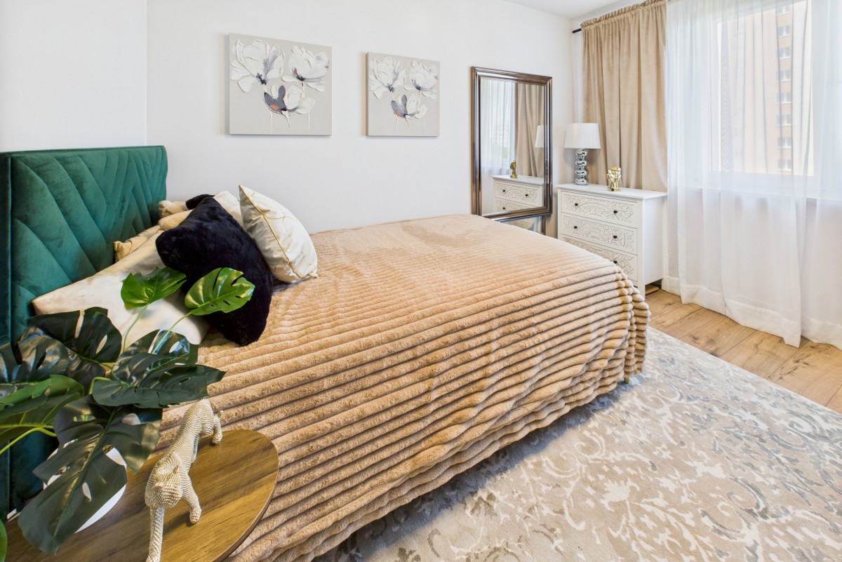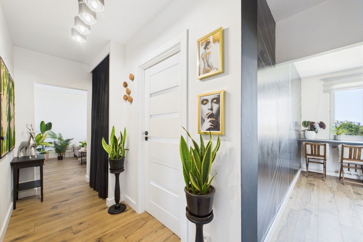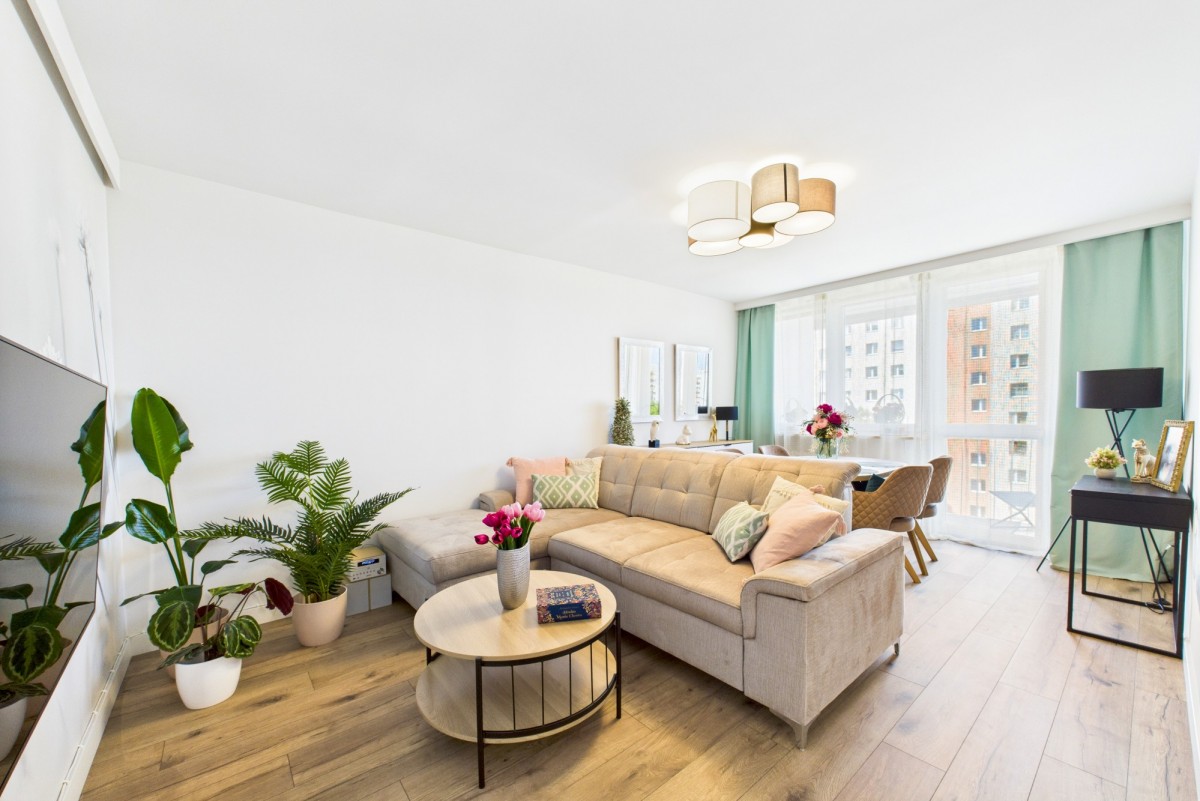 Wnętrze zachwyca nowoczesnym wykończeniem i funkcjonalnym rozkładem pomieszczeń. Do dyspozycji przyszłych właścicieli jest przestronny salon, w którym z łatwością mieści się stół jadalniany dla gości oraz komfortowy kącik wypoczynkowy z telewizorem. Osobna, widna kuchnia to idealne miejsce do gotowania, a ustawna sypialnia oferuje dużą, praktyczną szafę-garderobę, która pomieści wszystkie rzeczy osobiste. W przedpokoju przewidziano również miejsce na pojemną szafę w zabudowie. Łazienka z WC została utrzymana w stonowanej kolorystyce, a nowe drzwi wejściowe, wymienione w tym roku, zapewniają bezpieczeństwo i estetykę.