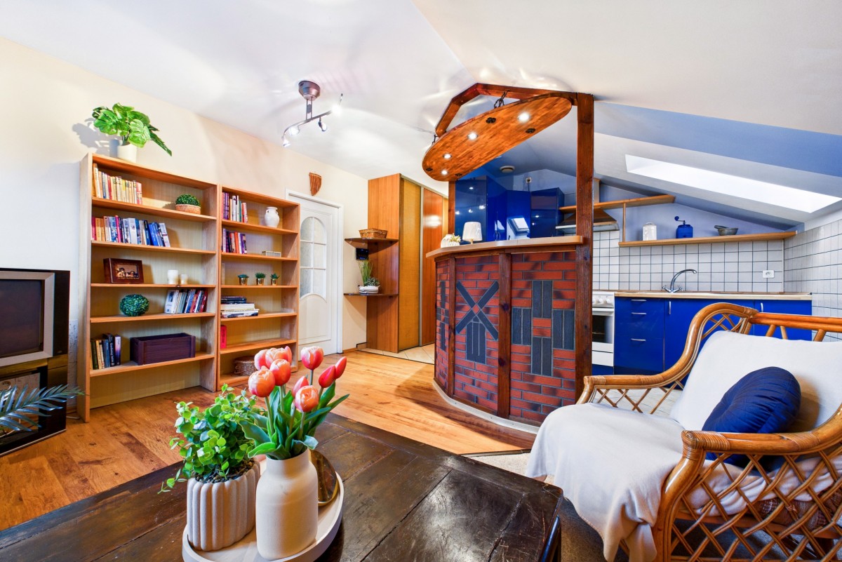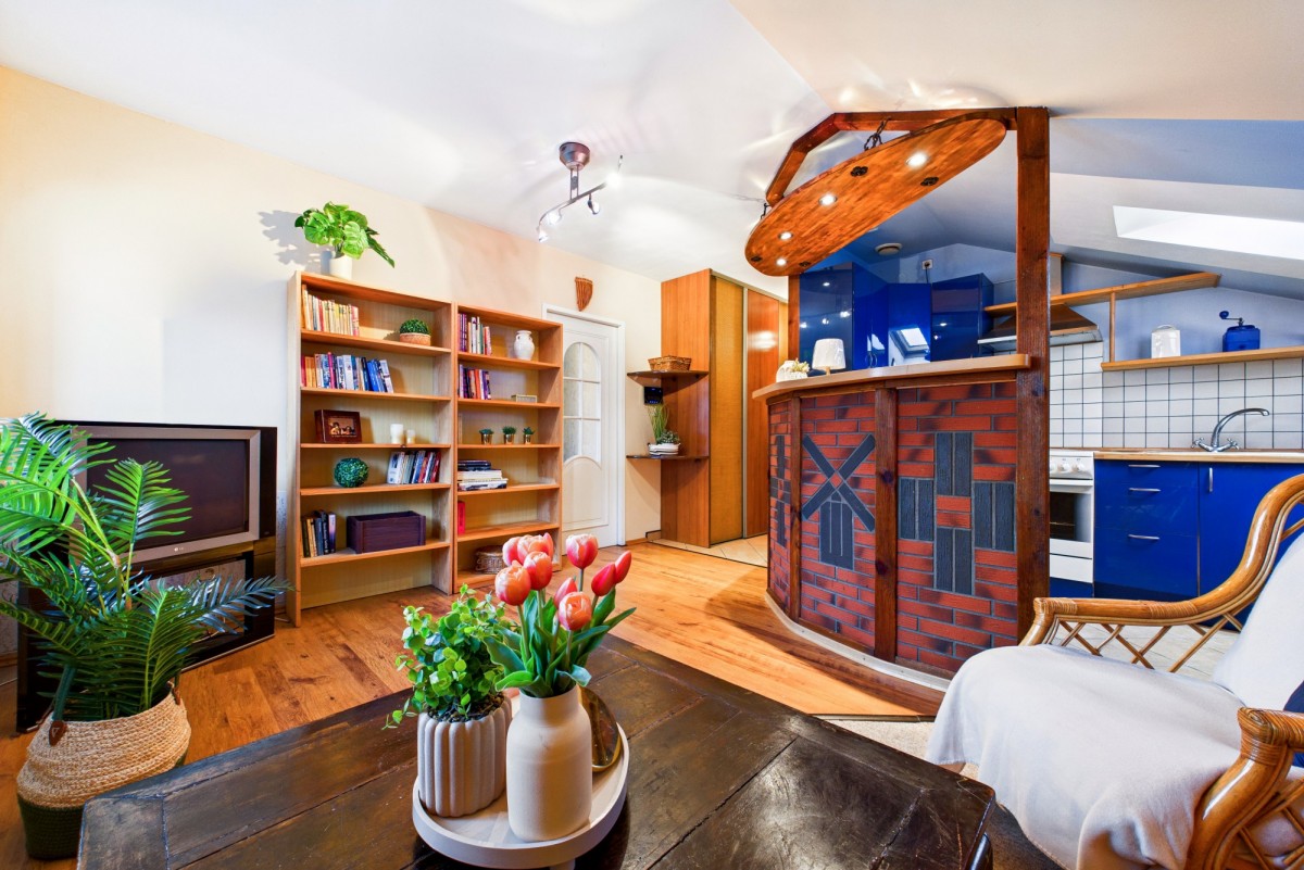 Mieszkanie składa się z salonu połączonego z aneksem kuchennym, co tworzy wygodną strefę dzienną, idealną zarówno do wypoczynku, jak i do spotkań w gronie bliskich. Dodatkowym atutem jest przytulna sypialnia oraz praktyczna łazienka z WC.