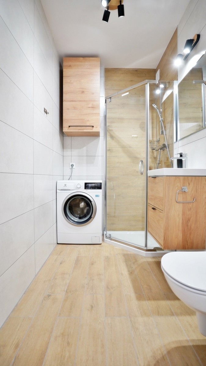 - łazienka z kabiną prysznicową i pralką (3,4 m2),