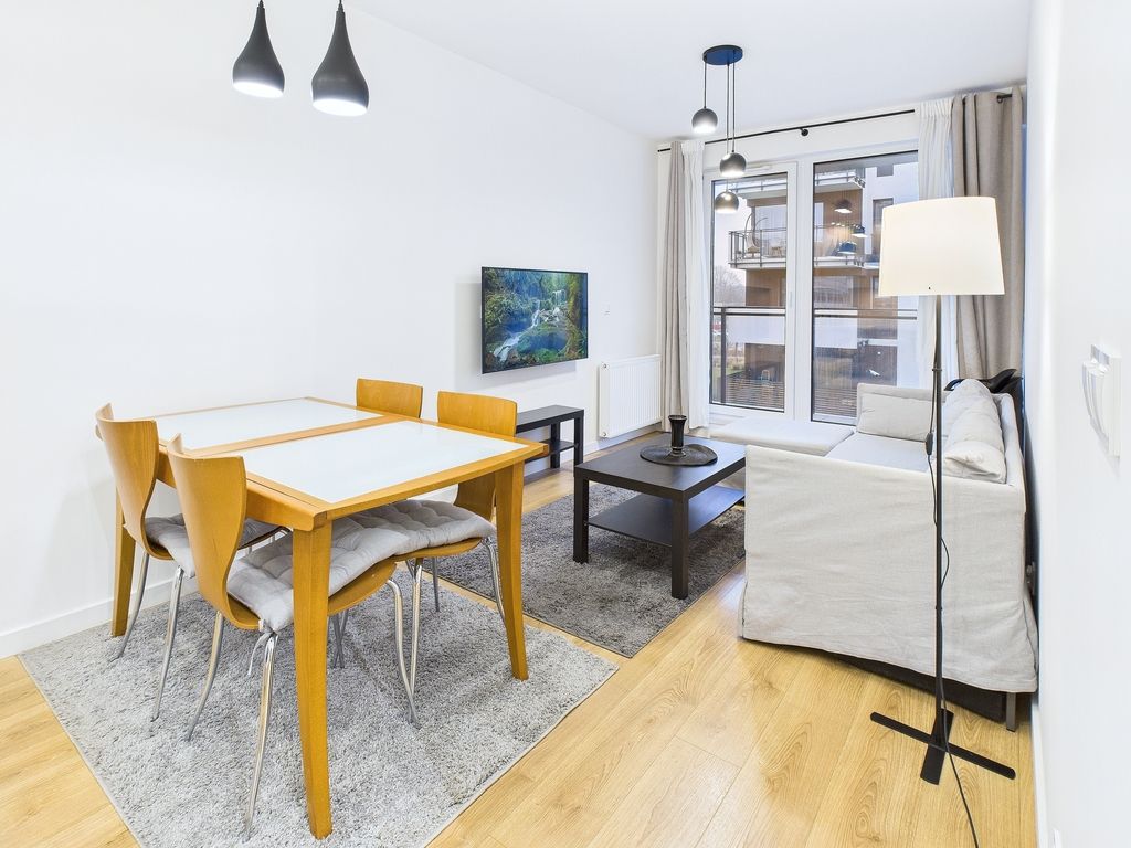 Mieszkanie jest w pełni umeblowane i wyposażone w sprzęt AGD/RTV – gotowe do zamieszkania bez dodatkowych nakładów.