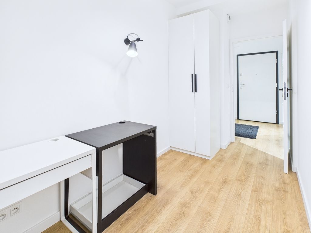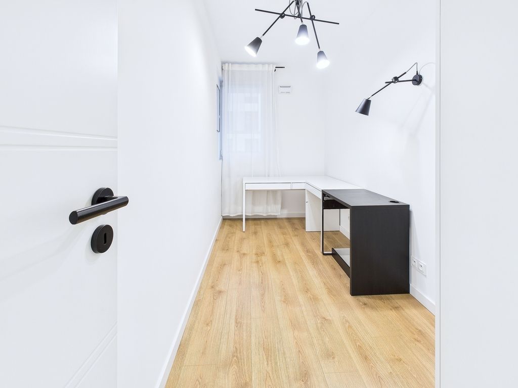 - druga sypialnia/gabinet (ok. 8 m²) z biurkiem i szafą,