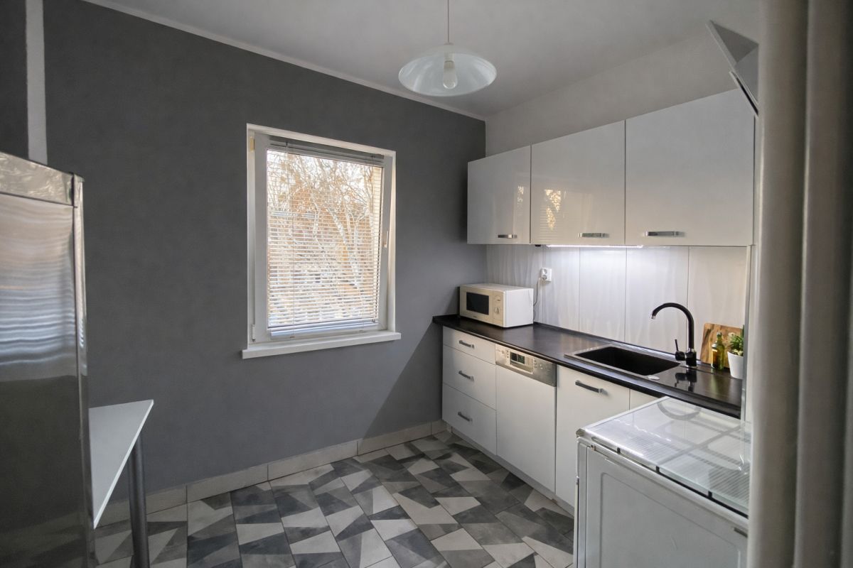 - osobnej kuchni z oknem, w pełni wyposażonej w sprzęt AGD (lodówka, piekarnik, zmywarka, okap, mikrofala),