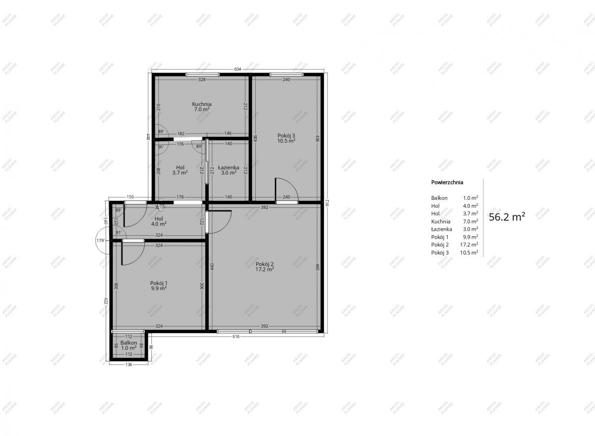 Mieszkanie o powierzchni 55,00 m2 składa się z: