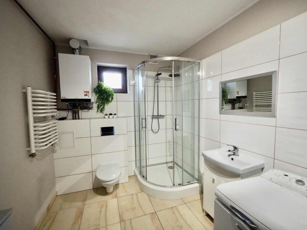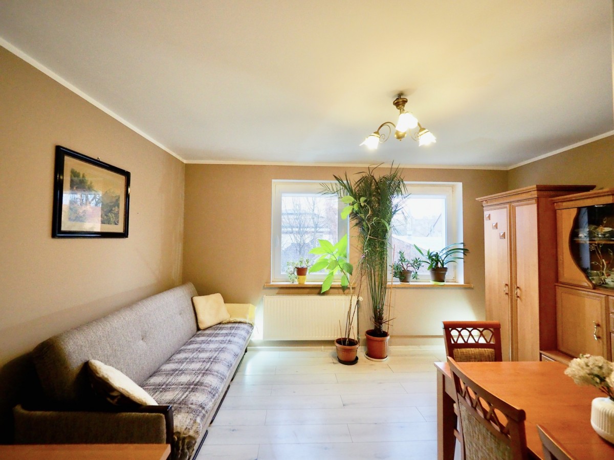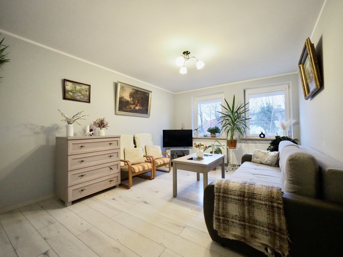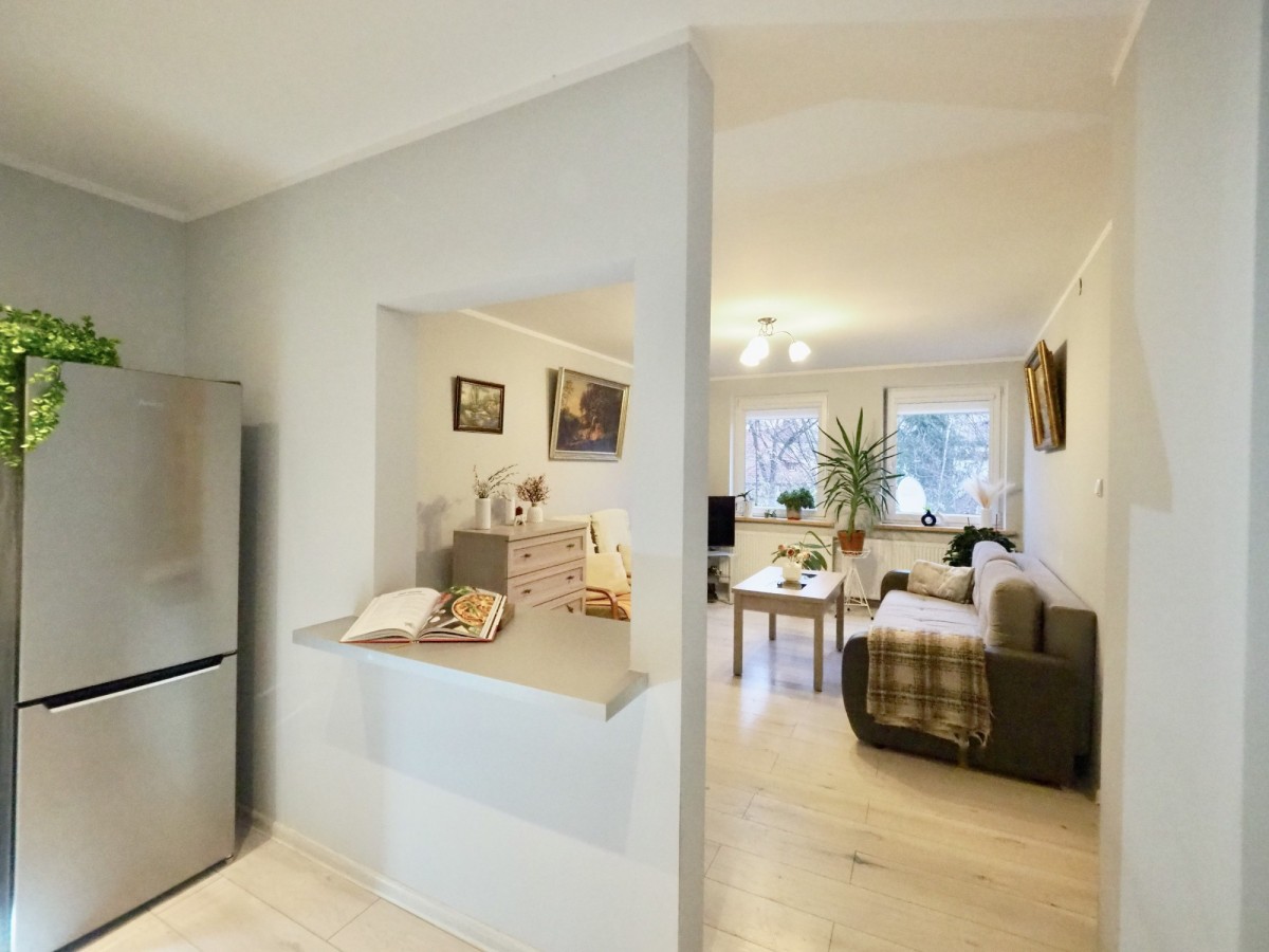 Przestrzeń mieszkalna obejmuje: 2 pokoje, w tym salon z aneksem kuchennym oraz łazienkę. Do dyspozycji Najemców jest również piwnica.